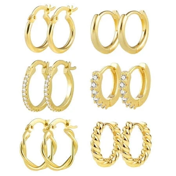 14K Gold Plated Chunky Hoop Earrings (6 Pairs)