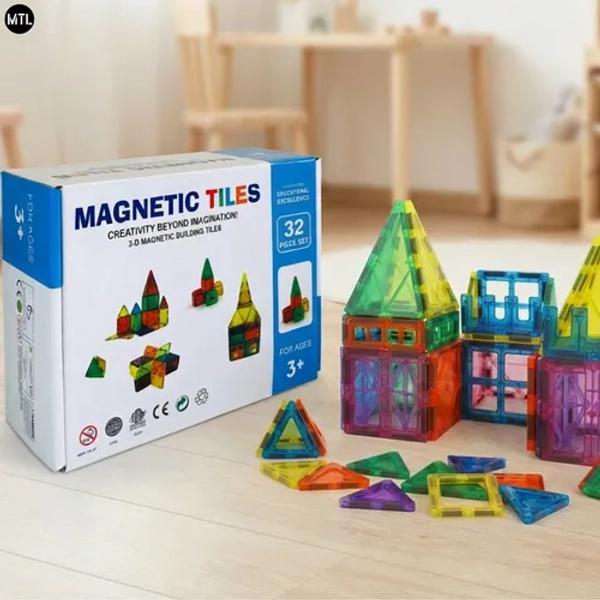 Bloques Magneticos Construccion 32 Piezas Juguete Mtl Educativo Niños Desde 3 Años Didactico Creativo Imaginacion Aprendizaje Sensorial Desarrollo Logico Seguro Resistente Colorido