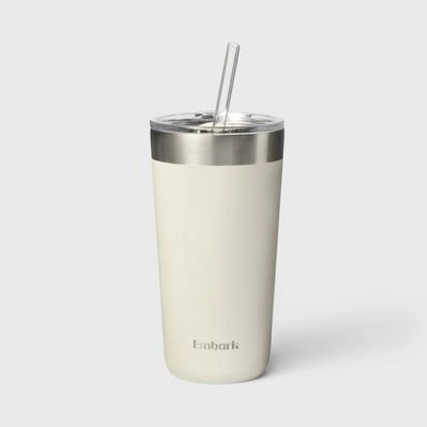 20oz Stainless Steel Tumbler with Straw Cream - Embark™: BPA-Free, Portable Drinkware