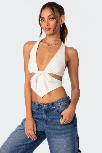 Cady Tie Front Cut Out Top | WHITE / S
