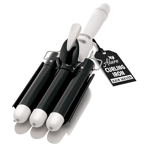 Alure Three Barrel Curling Iron Wand Hair Waver with LCD Temperature Display - 1 Inch Ceramic Tourmaline Triple Barrels, Dual Voltage Crimp - Zblack/White