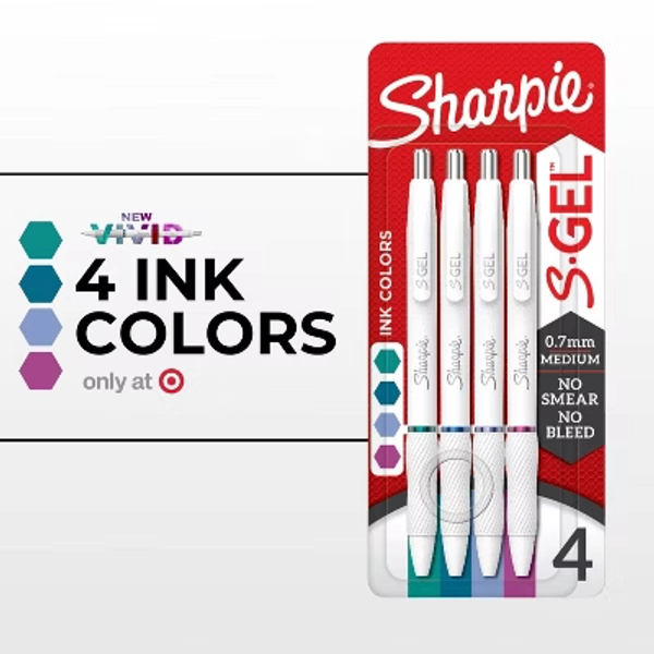 Sharpie S-Gel Pen 4pk 0.7mm Bright Assorted Ink Colors: Multicolored Gel Pens for Art & Office Use