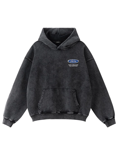 Emblem Pigment Overfit Cotton Hoodie [Black]