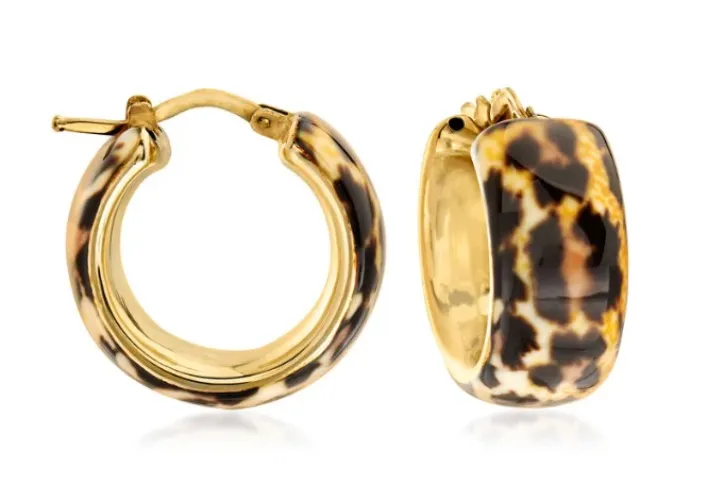 Italian Leopard-Print Enamel Hoop Earrings in 18kt Gold Over Sterling. 7/8"