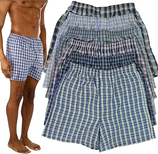 ToBeInStyle Men's Pack of 3 or 6 Button Fly Loose Fit Tartan Plaid Boxer Shorts - X-Large - 6-pack: Basic Prints Without Button Fly Closure