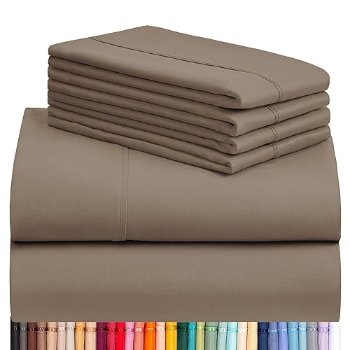 LuxClub 6 PC California King Sheet Set, Breathable Luxury Bed Sheets, Deep Pockets 18" Wrinkle Free Cooling Sheets Machine Washable Hotel Bedding Silky Soft - Dark Khaki Cal King - 20 - Dark Khaki - California King