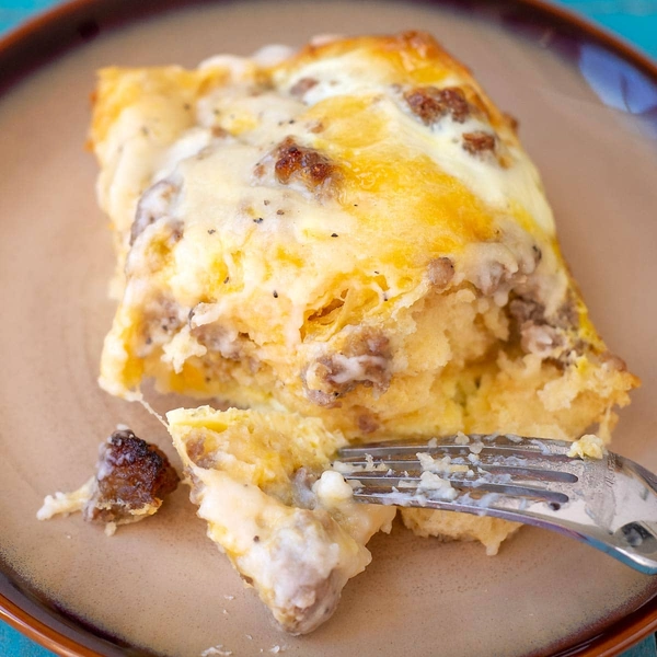 Biscuits and Gravy Casserole with Sausage and Eggs - By Scattered Thoughts of a Crafty Mom