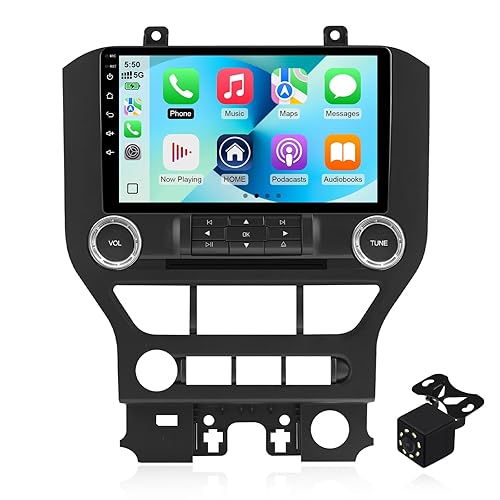 2+64G Android 14 Double Din Car Stereo for Ford Mustang 2015-2020 with 9 Inch Touchscreen Radio Built-in Wireless Carplay/Android Auto/GPS/Bluetooth/FM/AUX-in/Steering Wheel Controls/Backup Camera