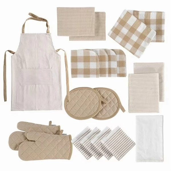 20 Piece Kitchen Dish Cloths Set - Cotton Dish Towels, Heat Resistant Kitchen Mittens and Pot Holder Set, Apron for Men with Pocket, Absorbent Dish Towels for Kitchen Drying - Beige