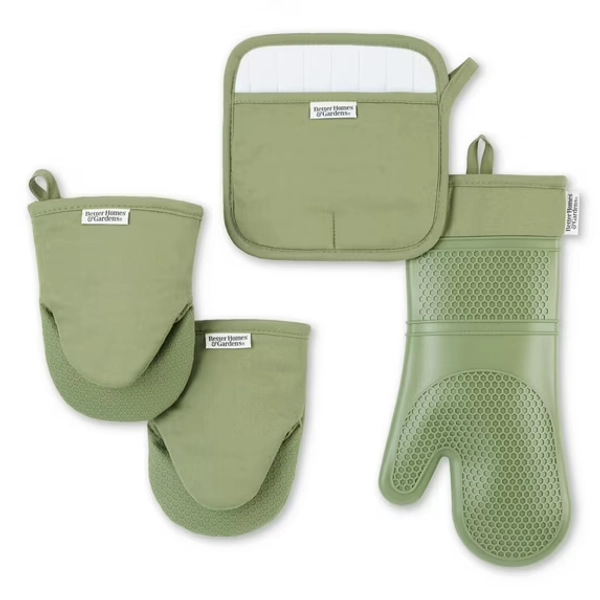 Better Homes & Gardens 4-Piece Oven Mitt, Potholder & Mini Mitt Set, Dark Cilantro