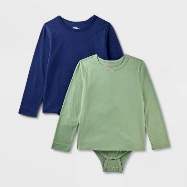 Kids' 2pk Adaptive Long Sleeve Bodysuit with Abdominal Access - Cat & Jack⢠Navy Blue/Green XL