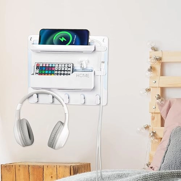YONGAIJIA Bedside Wall Mount Shelf, Adhesive Organizer for Remote, Phone, Glasses. Accessories Storage Suitable for College Dorm, Bunk Bed, Bedroom, RV (White) - White