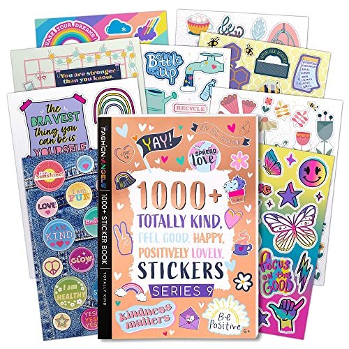 Fashion Angels 1000+ Kindness Stickers for Kids Positive Affirmation & Mental Health Stickers - 40-Page Sticker Book for Scrapbooks, Planners, Rewards, Ages 6+ - Spread Kindness