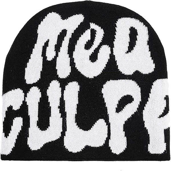 TaowaveWomen Beanie Y2k Hat,MEA Culpa Graphic Beanies Designs,Winter Hat Knit Skull Cap - Black White