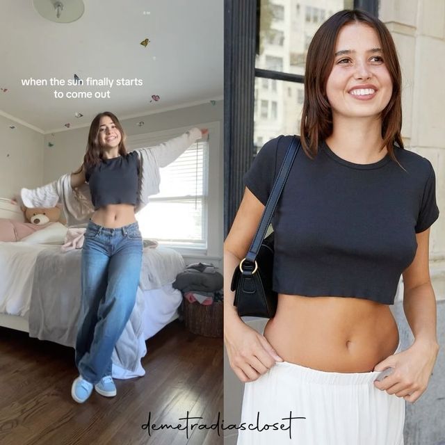 Demetra Dias Closet on Instagram: "@demetra.dias via tiktok demetra is wearing - @brandymelvilleusa / John Galt “Black Hailie Basic Cropped T-Shirt” ($18) - @brandymelvilleusa “Ayla Cable Knit Zip-Up Sweater” ($38) - @motelrocks “Roomy Extra Wide Low Rise Jeans” in Vintage Blue Green ($100) size: W26 L32 - Adidas “Campus 00s” in Ambient Sky ($110)"