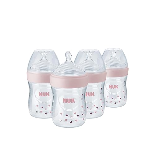 NUK Simply Natural Baby Bottle with SafeTemp - 4 Pack - 5 Ounce - Pink
