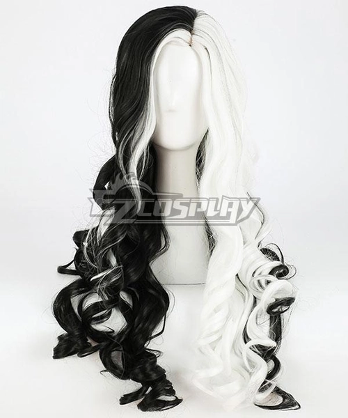 Disney Movie Cruella de Vil Black White Long Cosplay Wig