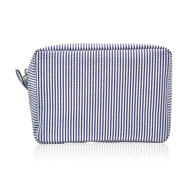 BRDXOOL Damen Kosmetiktasche Reisekosmetiktasche Große Kapazität Tragbare Gestreifte Kosmetiktasche Süße Kosmetiktasche Damen Aufbewahrungsbox Kulturbeutel Aufbewahrungstasche Weite Öffnung (Marine) - Marine