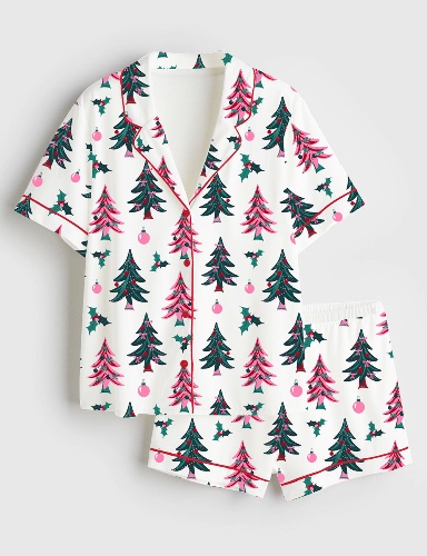 Women's Christmas Tree Short Sleeve Satin Pajama Set