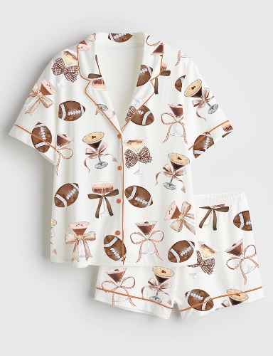 Women's Coquette Espresso Martini Lover Football Mom Short Sleeve Satin Pajama Set