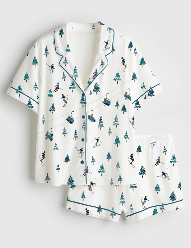 Women's Après Ski Mountains Short Sleeve Satin Pajama Set