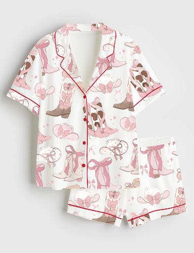 Women's Cowgirl Coquette Short Sleeve Satin Pajama Set