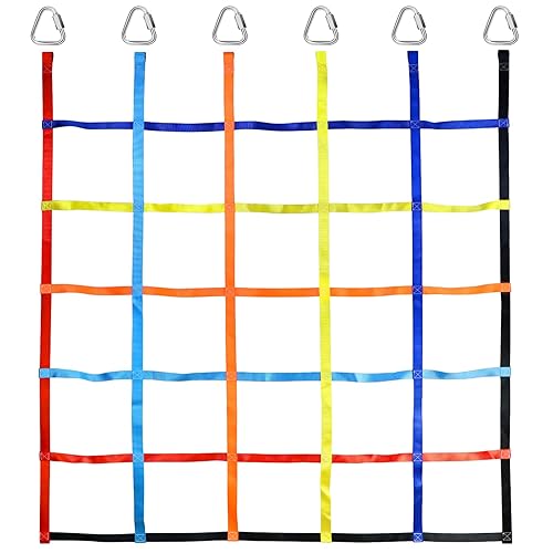 TOPNEW Climbing Net for Kids Outdoor, Ninja Cargo Net Rope Ladder Net for Ninja Slackline, Jungle Gyms, Swing Set, Playground Netting, Multi-Color