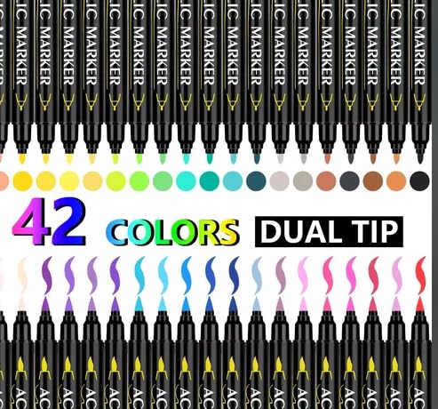 42 Colores de Marcadores Acrílicos Set de Doble Punta, Vibrantes, Ideal para Pintura y Manualidades, Incluye Caja de Cartón (42)