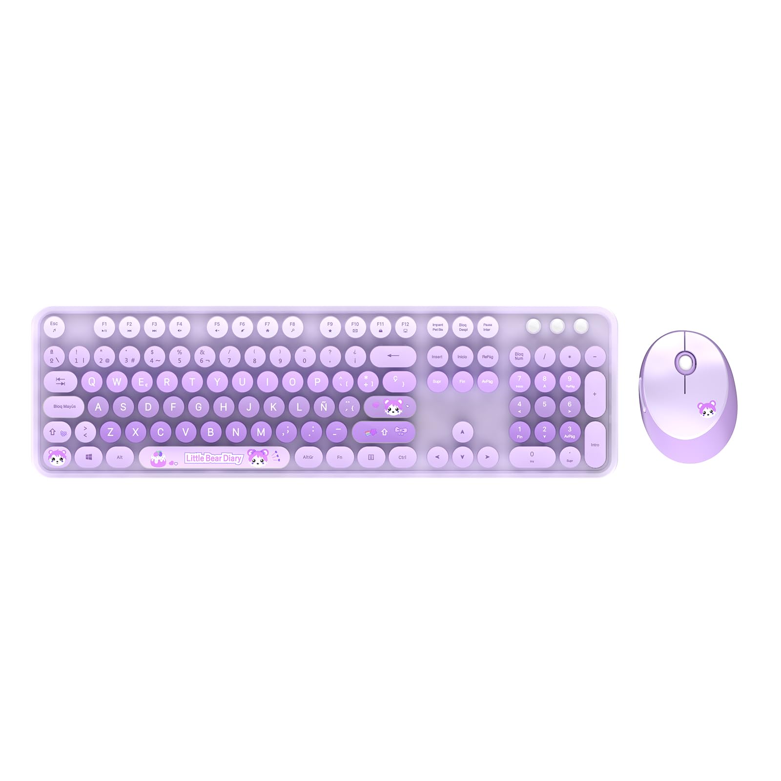 Teclado y Mouse inalámbrico Español,Tecla Redondas Retro Vintage,Multicolor-Morado Gradiente - Morado Gradiente
