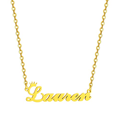 SKQIR Gold Custom Women Name Necklace Personalized, Customized Chains Name Pendants Necklaces Personalized Name Necklace with Crown for Women Girl Gift - Lauren-Gold