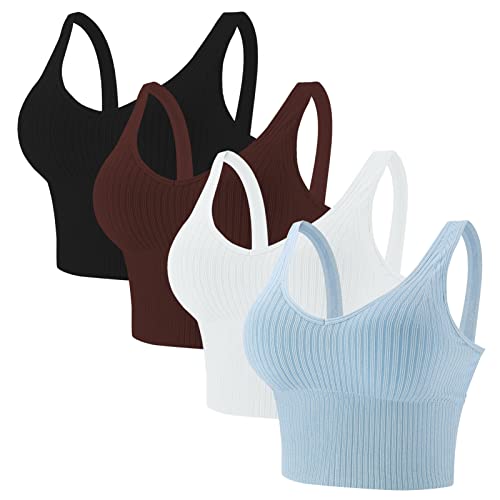 Eleplus 4 Pieces Comfy Cami Bra for Women Crop Top Yoga Bralette Longline Padded Lounge Bra Pack of 4 - Small-Medium - Color4