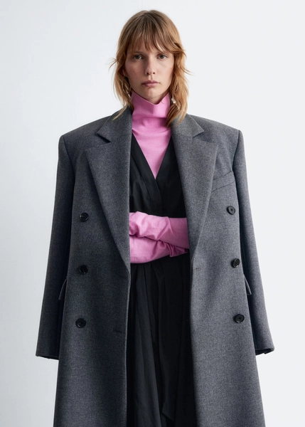 & Other Stories wool double breasted maxi coat with bold shoulder details in grey | ASOS