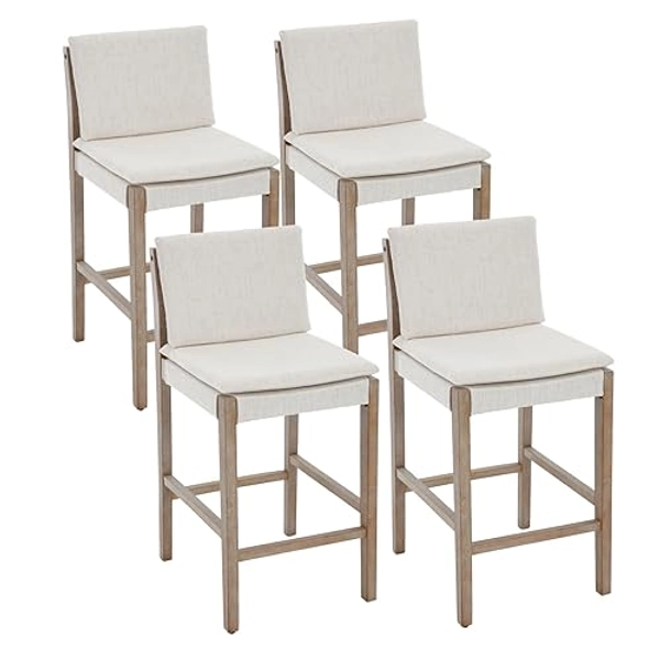 Janoray Mid Century Modern 26" Counter Bar Stools Set of 4, Farmhouse Upholstered Wooden Counter Height Barstools with Footrest for Kitchen Island/Home Bar/Balcony/Cafe, Linen White - Set of 4 - White