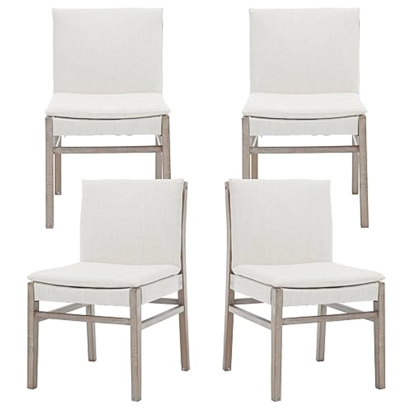 DM Furniture White Dining Chairs Set of 4 Farmhouse Kitchen Chairs with Wood Legs Upholstered Linen Accent Side Chair for Living Room/Dining Room/Home Kitchen/Restaurant - 4 Chairs - Linen- White