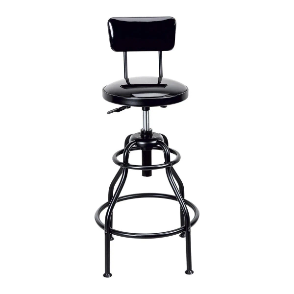 Adjustable Shop Stool with Backrest, Black