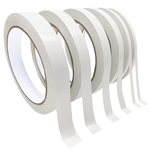 Double Sided Tape for Crafts, 6 Rolls Multi-Size Double-Sided Adhesive Tape for Arts, Photography, Gift Box, Scrapbooking, Card Making, Paper Backing - 3mm/ 5mm/ 8mm/ 10mm/ 12mm/ 15mm
