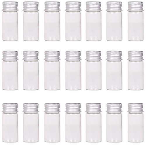 MaxMau 24 Sets 10ml Glass Vials Small Bottles Mini Tiny Jars with Aluminum Screw Caps Sealed Top Metal Lids Cover Clear Message Sample Bottle Storing Beads Wedding Favors Decorations DIY Crafts