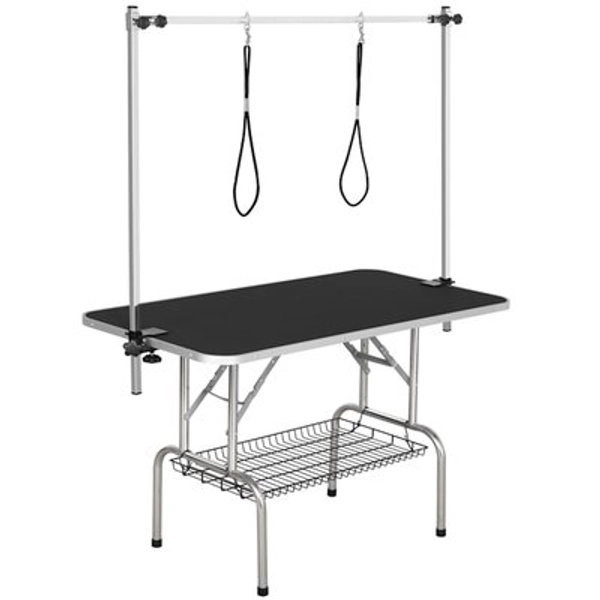 Topeakmart Black 45" Foldable Pet Grooming Table with Adjustable Arm, 46.5" L X 24" W X 69.7" H
