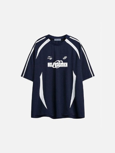 Aelfric Eden Contrast Color Stripe Racing Tee | Navy Blue / M