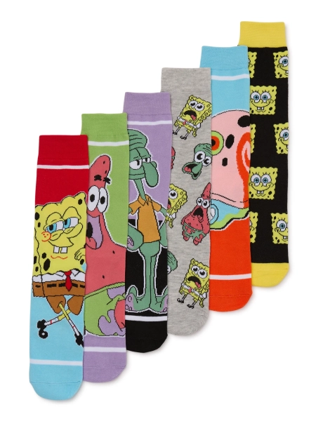 SpongeBob SquarePants Breathable Polyester Men’s Crew Socks, Red (6-Pack)