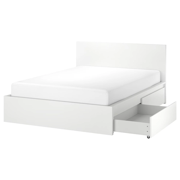 MALM High bed frame/2 storage boxes - white Full