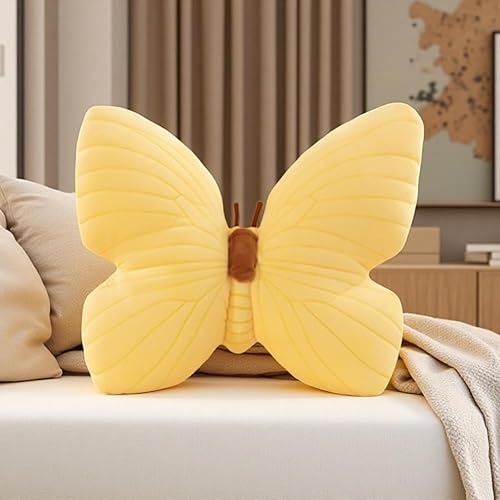 Labauxite Butterfly Shaped Throw Pillow, Soft Butterfly Stuffed Seat Cushion Pad,Plush Pillow Velvet Decorative Animal Pillow for Couch Living Room Bed (Yellow)