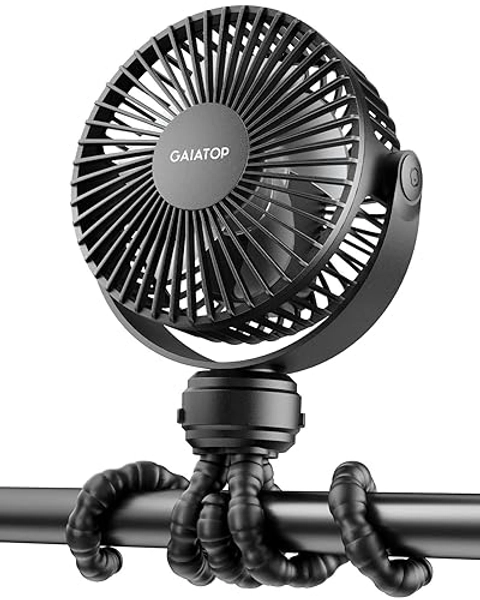 Gaiatop Mini Portable Stroller Fan, Battery Operated Small Clip on, Detachable 3 Speed Rechargeable, 360° Rotate Flexible Tripod Better Cooling for Car Seat Crib Treadmill Travel Black - black
