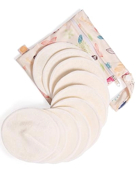 Kindred Bravely Organic Reusable Nursing Pads 10 Pack | Washable Breast Pads for Breastfeeding, Leaking with Carry Bag - Beige Multicolored - 10-Count